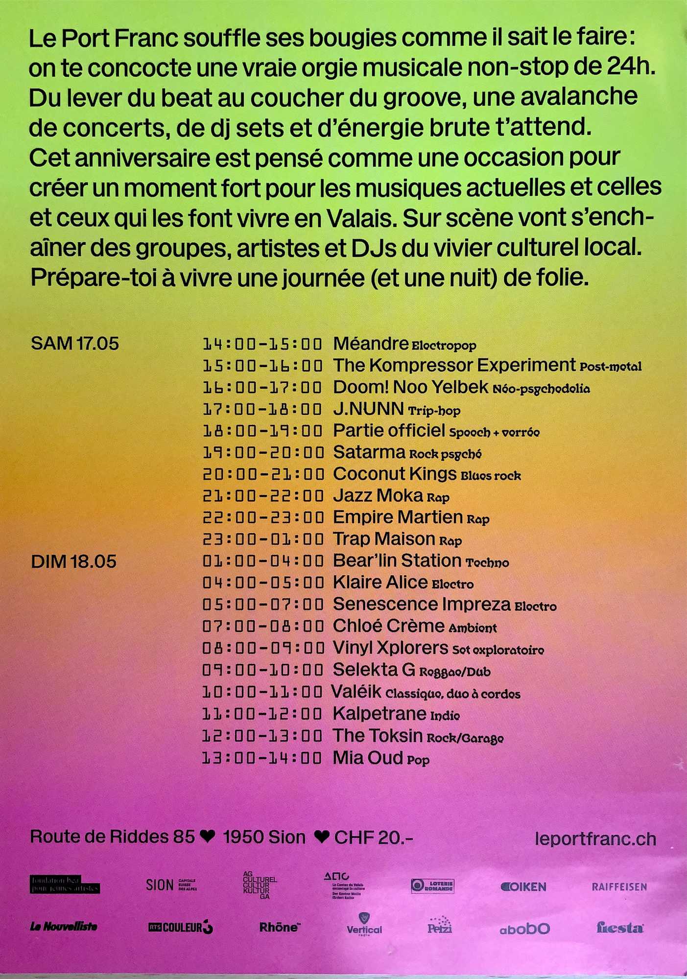 La fondation a eu en plus la chance de pouvoir collaborer avec les lieux culturels suivants: Halle Nord, L’ABRI, Le Port Franc, la Ferme-Asile, BIG 2025, Zabriskie Point, Catalsyse et le TU